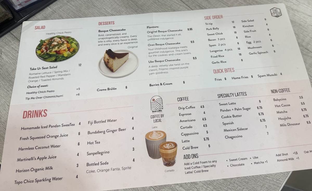 Spam / Steamed Rice / Fried Eggs / Spinach / TUS Sauce / Crispy Onions / Scallions