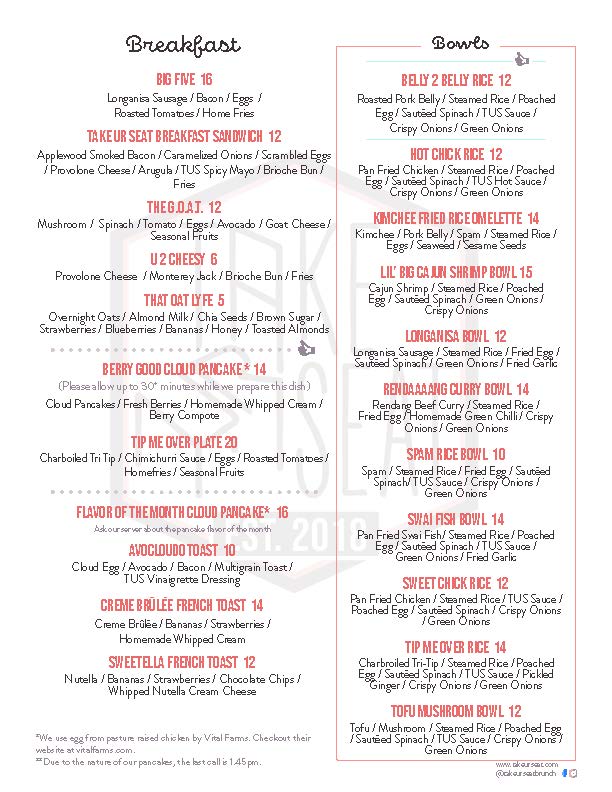 Charbroiled Tri-Tip / Steamed Rice / Poached Egg / Spinach / TUS Sauce / Pickled Ginger / Crispy Onions / Scallions