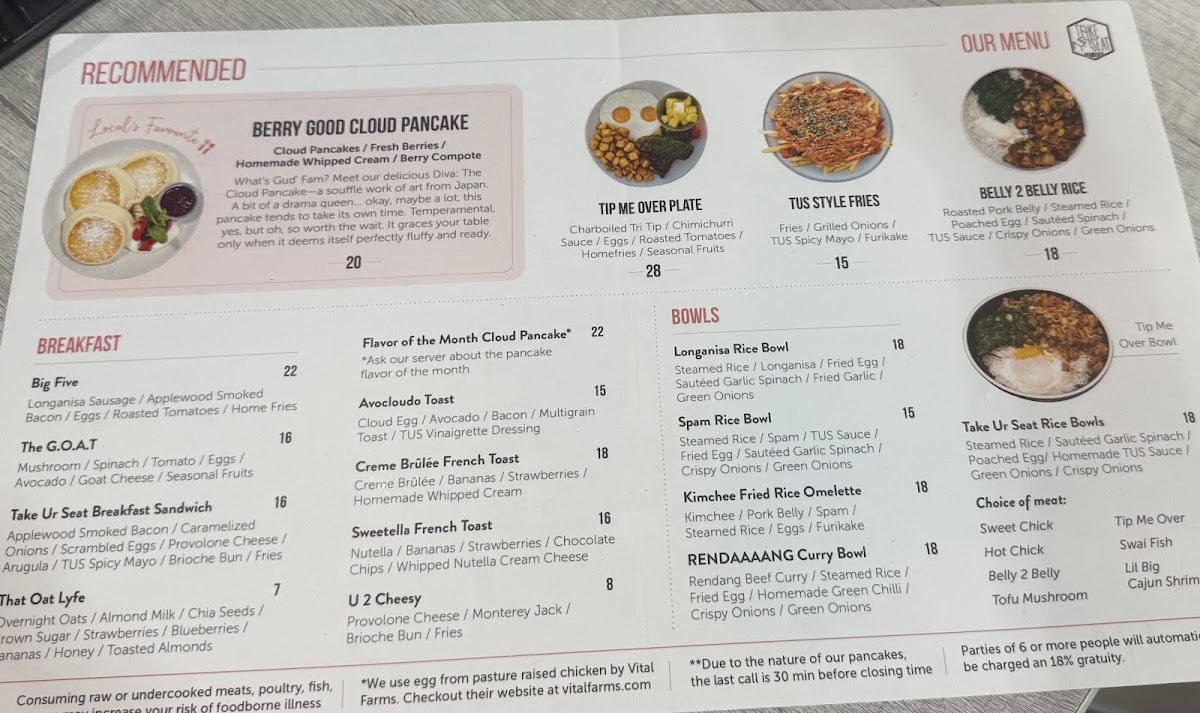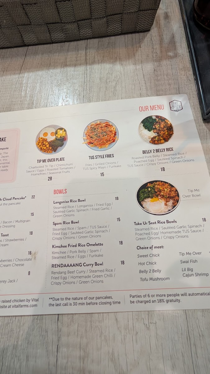 Pan Fried Chicken / Steamed Rice / Poached Egg / Spinach / Spicy TUS Sauce / Crispy Onions / Scallions